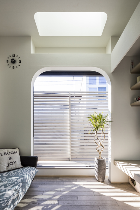 メトロポリスの中心で、共働きの夫婦が育児と仕事を両立しつつ、超狭小敷地という困難な条件にもあきらめず、長年住み慣れた場所で生きていくという強い意志を秘めた極めてちいさいながらもエレガントで機能的な住宅です。 摩天楼の森にひっそりと佇む隠れ家のような、家族とともにゆったりリラックスできる、かけがえのないオアシスであって欲しいという願いが実現しました。