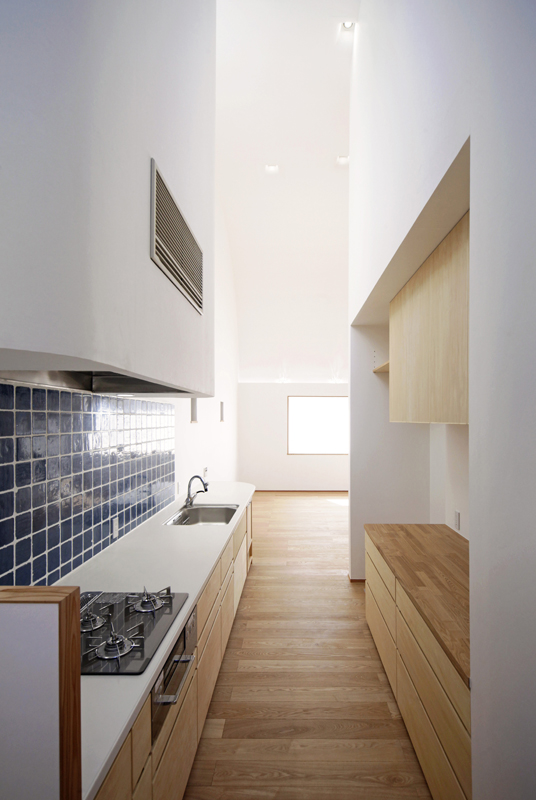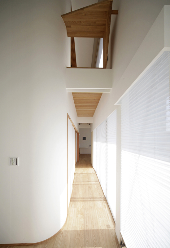 この『回廊』は、1階の老両親がスムーズに移動するための寝室を中心とした “回遊動線” として機能する他、2階の家族がプライバシーを確保しながらも1階の様子を気に掛け、2階のどこにいても1階の気配をそれとなく感じ取れる、つかず離れずの関係を築くことを目的としています。